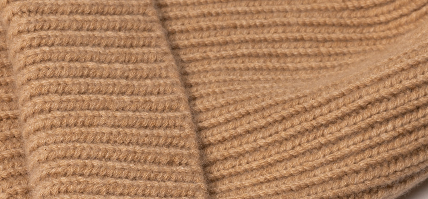 Ribbed Knit Cashmere Beanie - Camel